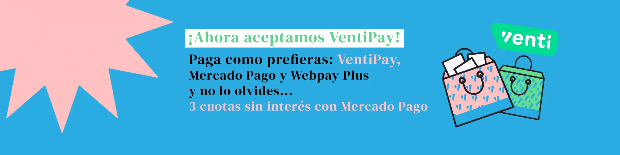 Paga con Mercado Pago, WebPay Plus, Ventipay o 3 cuotas sin interés.